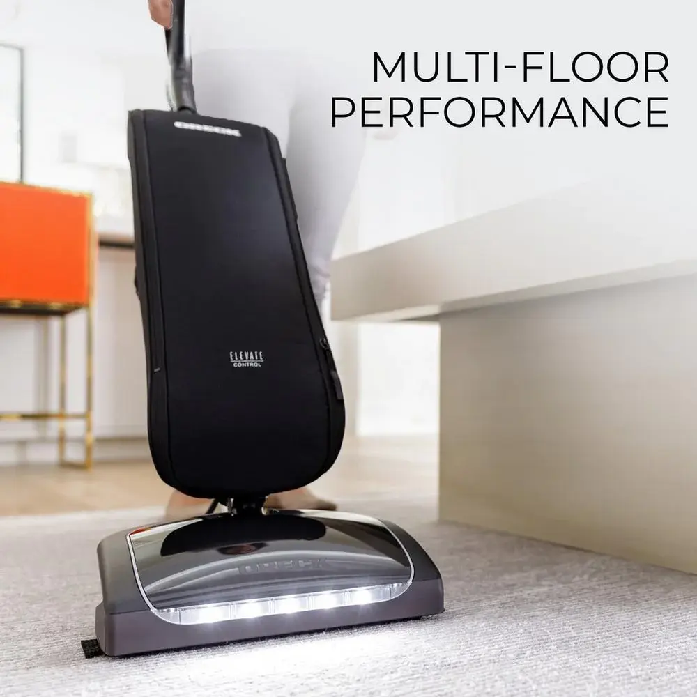 The Oreck Elevate Control Bagged Upright Vacuum is a versatile machine designed to give your carpets a high-quality clean. Lightweight but powerful, this machine effectively traps allergen matter and successfully maneuvers those hard to reach areas. This machine is built to give you the best of both worlds: all the power of a bagged machine with the light design of a bagless one. Thanks to its incredibly efficient motor, Control is able to provide powerful suction and filtration without needing to be bulky or heavy and can be easily carried up or downstairs, plus fits snugly into small storage areas.